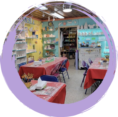 Parties are 1.5 hrs long. Cost is $240 and includes a ceramic party piece of choice per guest – Please feel free to bring any food and drinks for your guests – there’s 2 tables and shelving too
