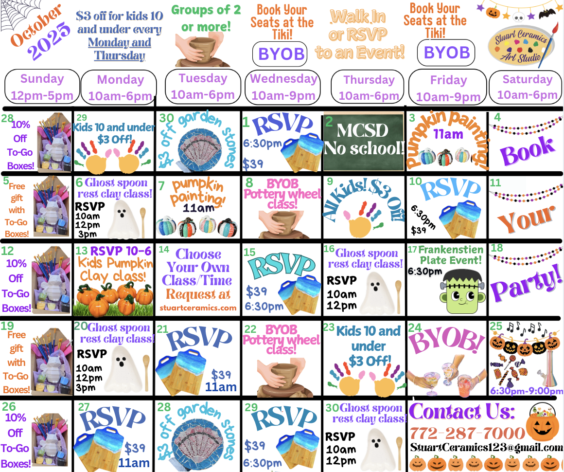 (Yes we're open 10am-6pm) At 2pm we pull out the bubbles! So Fun! Paint two coats as usual, then choose your color for the bubbles! We’ll give you a soapy […]